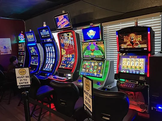 There’s a row of gaming machines opposite the bar for all of you gamblers out there.