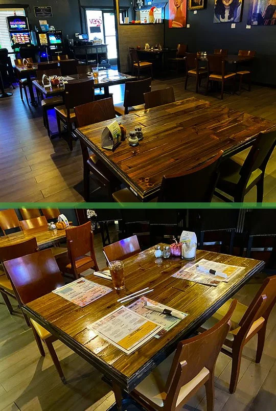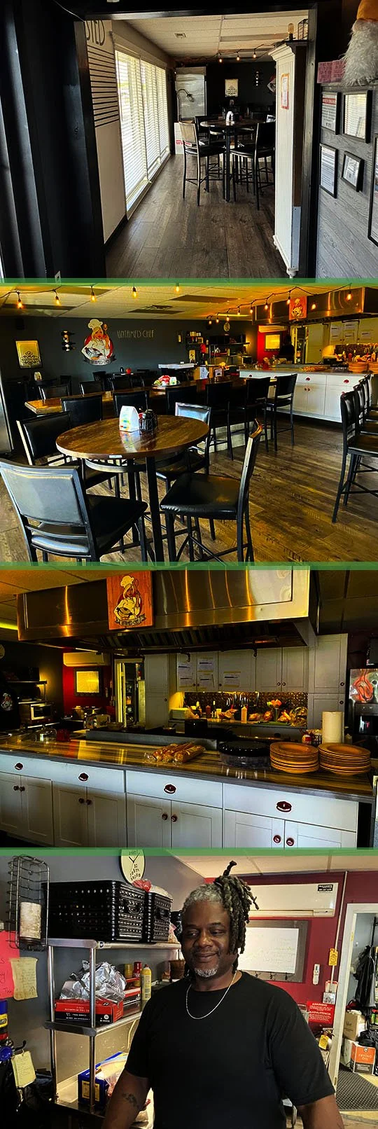 This is the original dining space of The Untamed Chef and the kitchen and cooking area are located at the front of the room.