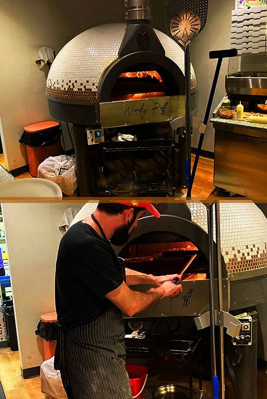 The Wendy Puff wood-fired oven gives the pizza a wonderful flavor and the sauce and toppings are fresh and so delicious!