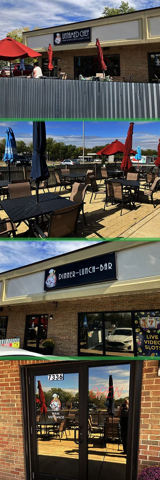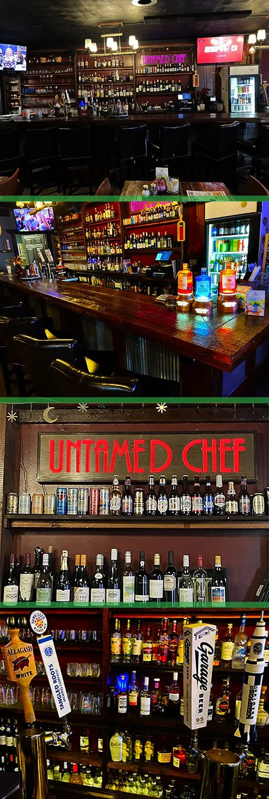 The wooden bar is very nice with The Untamed Chef lit-up logo on the back wall!