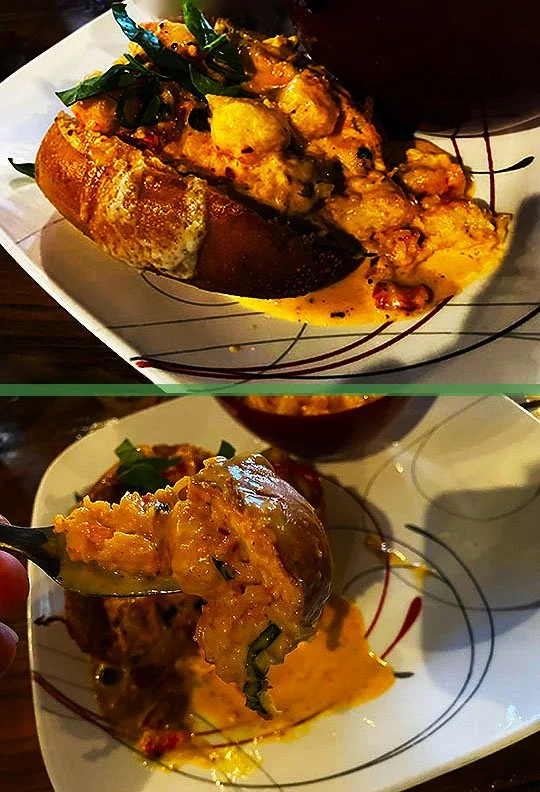 It’s served on a bakery fresh roll and packed with juicy chunks of lobster covered in a rich and creamy cheese sauce. It is so flavorful and fantastic!