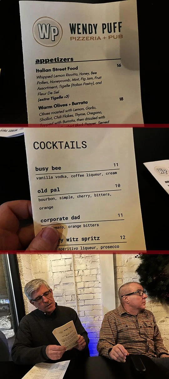 I’ve come here because I’ve heard some good things about this pizza restaurant called, Wendy’s Puff Pizzeria + Pub. Let’s go inside and see what’s happening in here on this chilly Saturday evening!