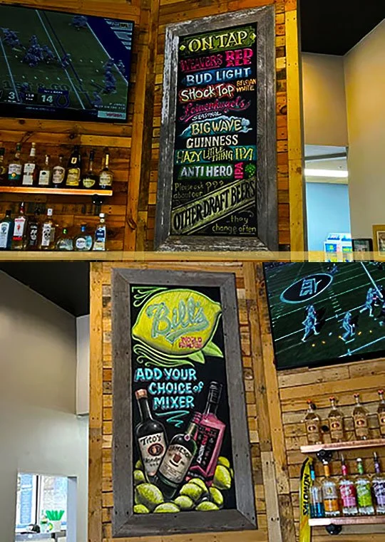 There’s a listing of the aforementioned beers on tap and a nice piece of Bill’s Lemonade art on the wall behind the bar.