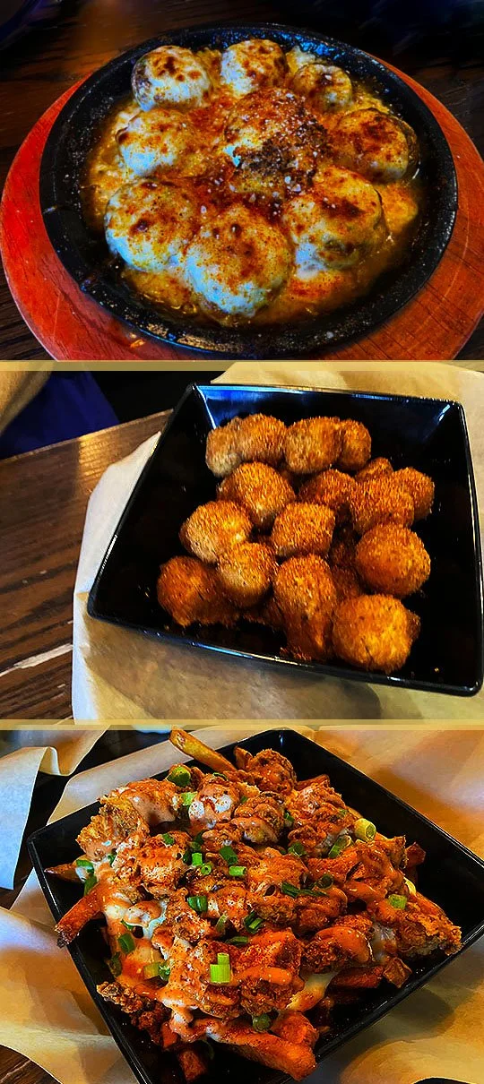 From the top: Crab Stuffed Mushrooms, Cheddar Cheese Balls and Chicken Cheese Fries! Time to dig in and try these wonderful looking appetizers out!