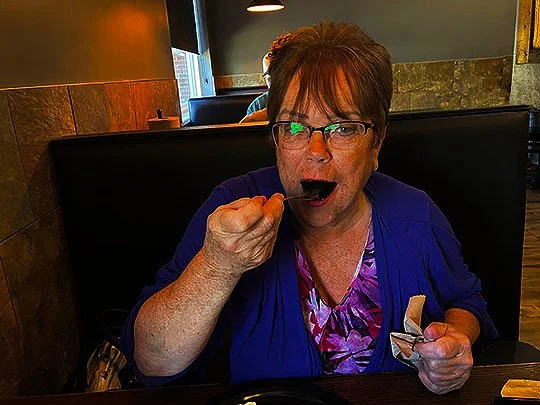 There’s Nancy enjoying our appetizer order and she raved on about how tasty everything was!