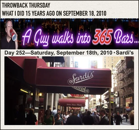 Fifteen years ago on this date, September 18, 2010 I was in the last quarter of my year-long bar crawl. I was up to bar number 252 and I went to a famous theater district bar and restaurant in New York City, Sardi’s!