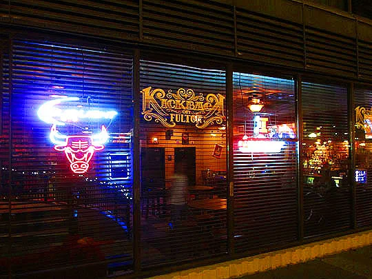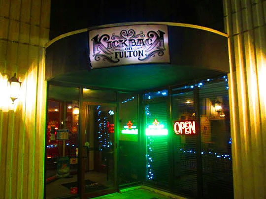 Here's the entrance on the corner, let's go in and see what's happening at Kickback on Fulton.