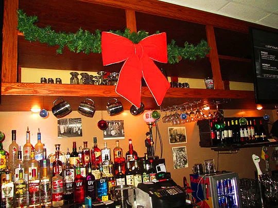 A festive red bow hangs over the bar reminding all of us that this is a festive time of year.