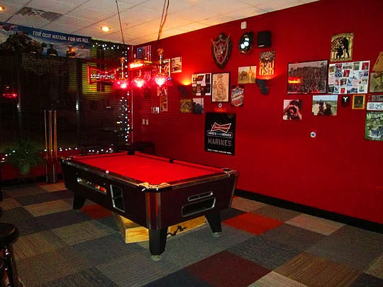 This room is really nice up here. There's a brand new pool table and art on the walls.