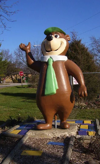 As I’ve written in the past once before, anytime I visit Conklin’s Barn Dinner Theatre out in the sticks of Goodfield I enjoy looking over into the near distance, across the creek to the adjacent Jellystone Park Campground. There at the entrance to the site is where a giant statue of Yogi Bear has stood greeting visitors for years. It’s always been fun to sort of wave back at Yogi—who better to stand sentient at the very place he made famous than the original “smarter than the average bear?” Yogi was one of my favorites growing up, and I’d even say that today he ranks pretty high on the list of best “retro” cartoon characters.