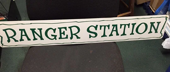 No that wasn’t all. One of the ladies led me out through the back door to the Activities Barn, a place where campers can spend a rainy afternoon such as this one watching movies and doing art projects. There was another stash to reveal in here, and hey! That sign is lettered same as the Ranger Station, so my font theory is debunked.