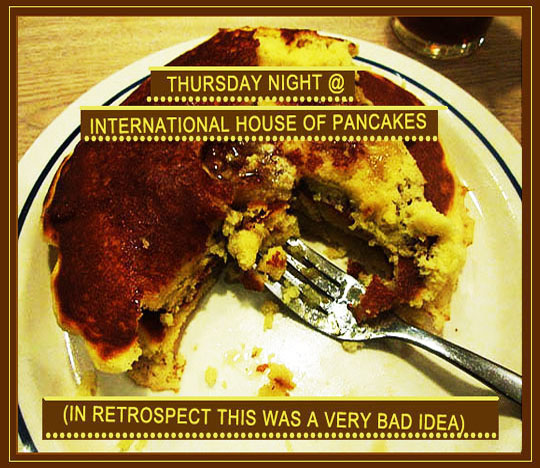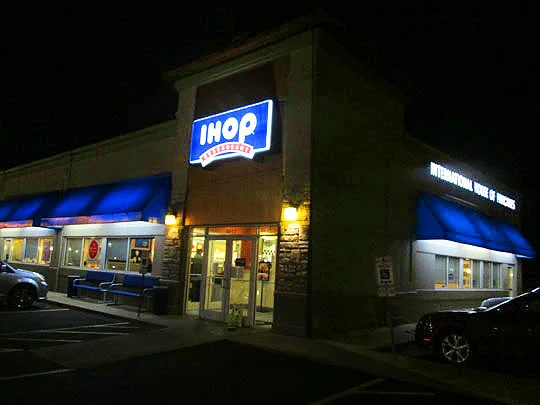 Here we are at International House of Pancakes or as they like to call themselves, “IHOP.” Personally, if I had a restaurant I would never refer to it as, “IHOP,” because it makes me think of a swarm of crippled diners that have all lost their crutches and wheelchairs and are struggling in a horrific manner to get inside to feed their crippled bodies. Not that there’s anything wrong with cripples...well, actually there is—they’re crippled...but let’s just keep going forward, I’m starting to lose my appetite already!