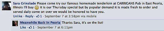 I had gotten an invitation to go to Carrigan’s Pub in East Peoria on facecrack: